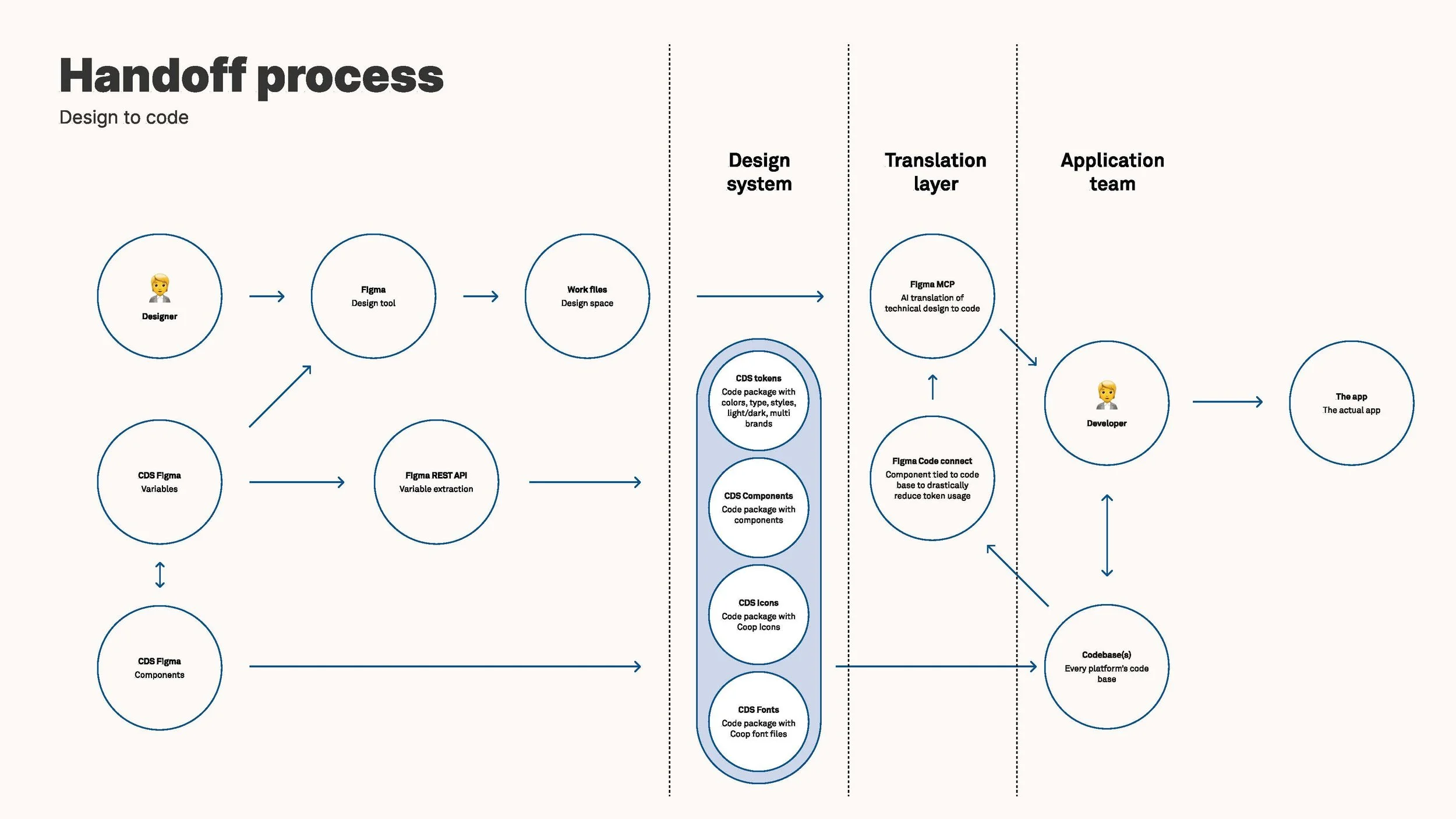 Before CDS existed, every team owned their own version of the truth. Coop.se had its components. Coop app had its own. Scan & Pay had its own. Internal tools had their own. A designer in one team couldn't share work with a team three seats away without starting from scratch.